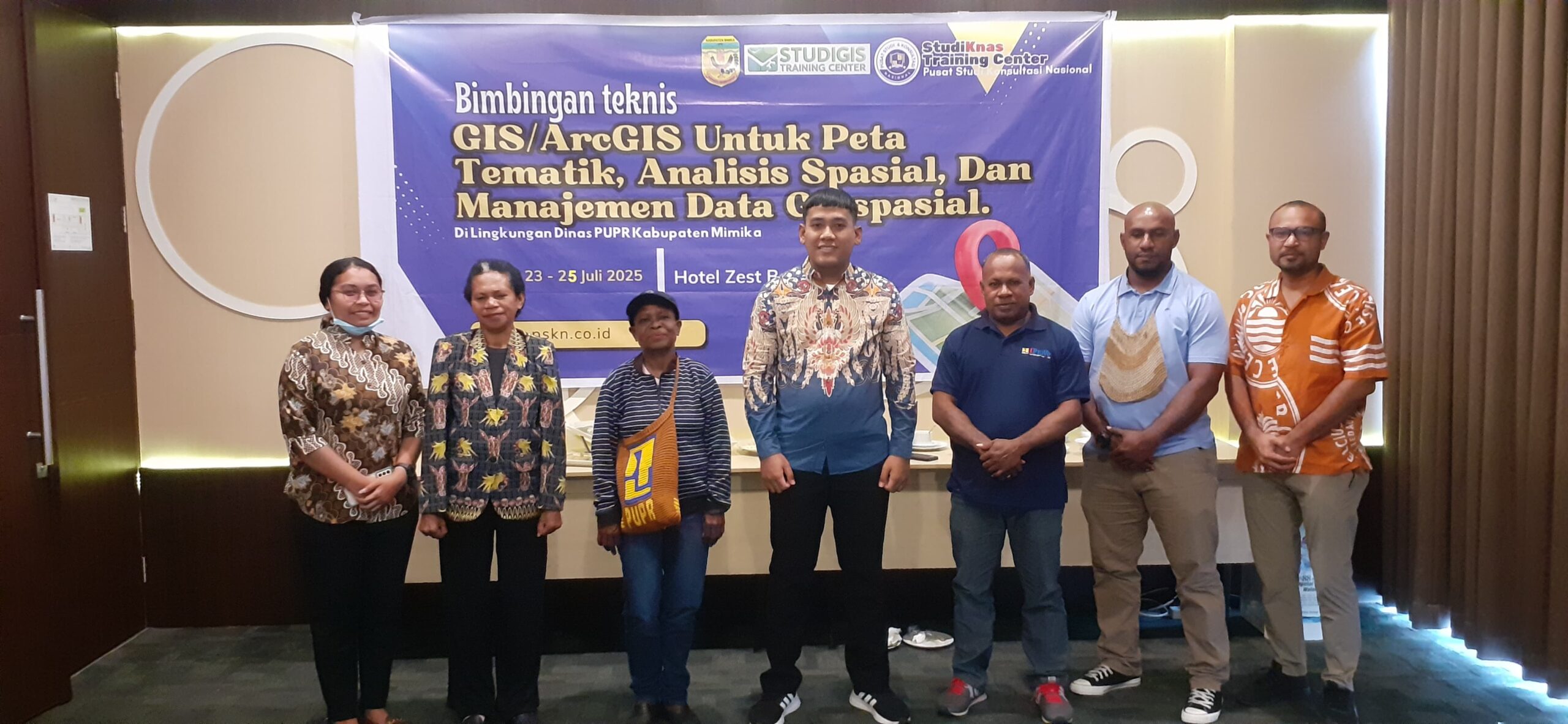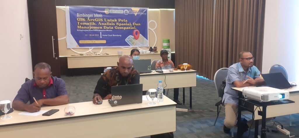 Untuk Meningkatkan pengetahuan dan keterampilan peserta dalam penggunaan perangkat lunak ArcGIS. dan Meningkatkan kemampuan peserta dalam mengolah, menganalisis, dan memetakan data spasial. serta Mendukung optimalisasi pengelolaan data spasial untuk kebutuhan perencanaan dan pelaksanaan program kerja dilingkungan PUPR. DPUPR Kabupaten Mimika mengikuti kegiatan Bimtek GIS dan ArcGIS Untuk Peta Tematik yang diselenggarakan oleh PT. Pusat Studi dan Konsultasi Nasional pada tanggal 22 s.d 26 Juli 2025 di Zest Sukajadi Bandung by Swiss-Belhotel International