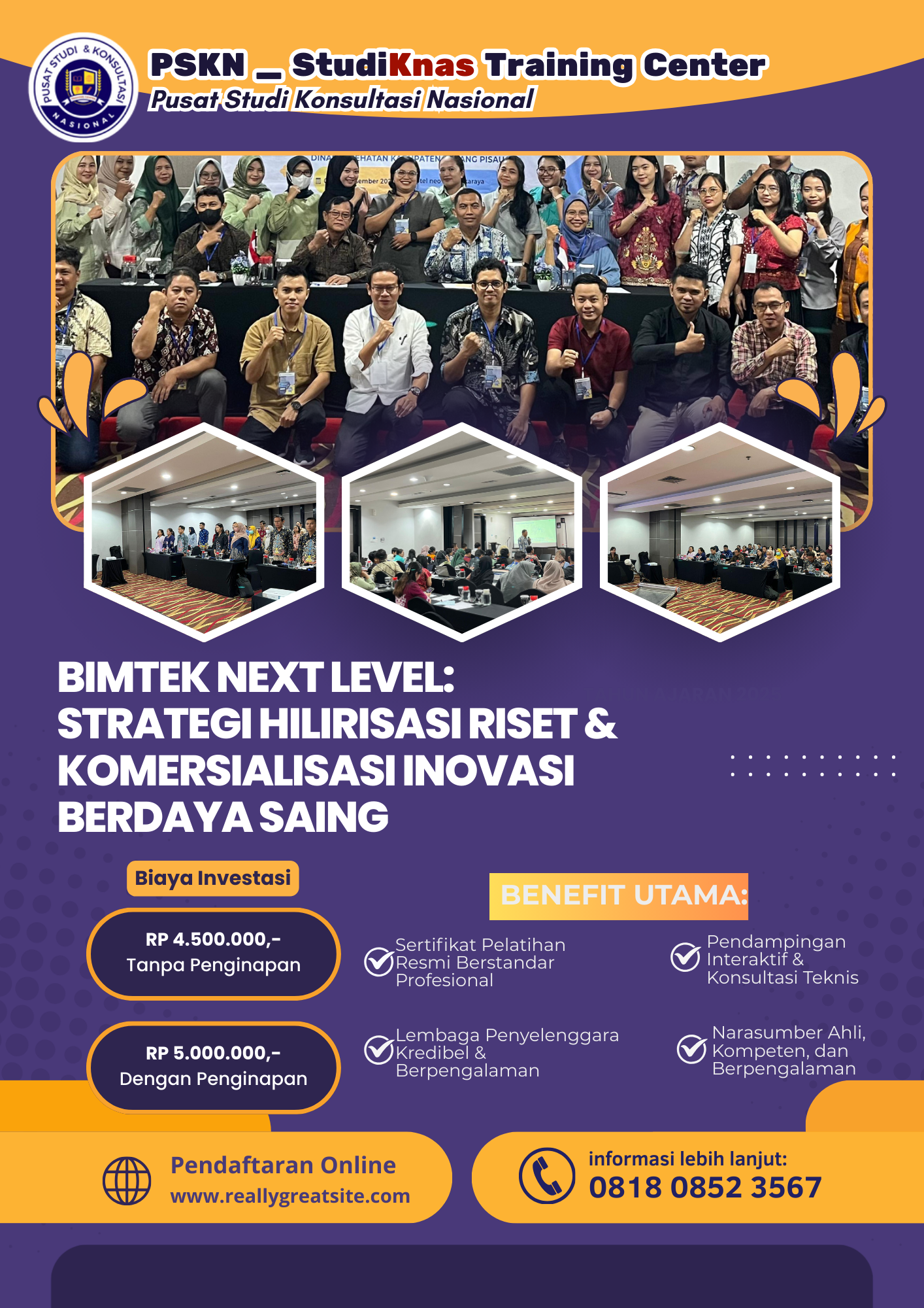 Segera daftarkan institusi Anda dan jadwalkan bimtek terbaik untuk mempercepat transformasi riset menjadi inovasi bernilai ekonomi.