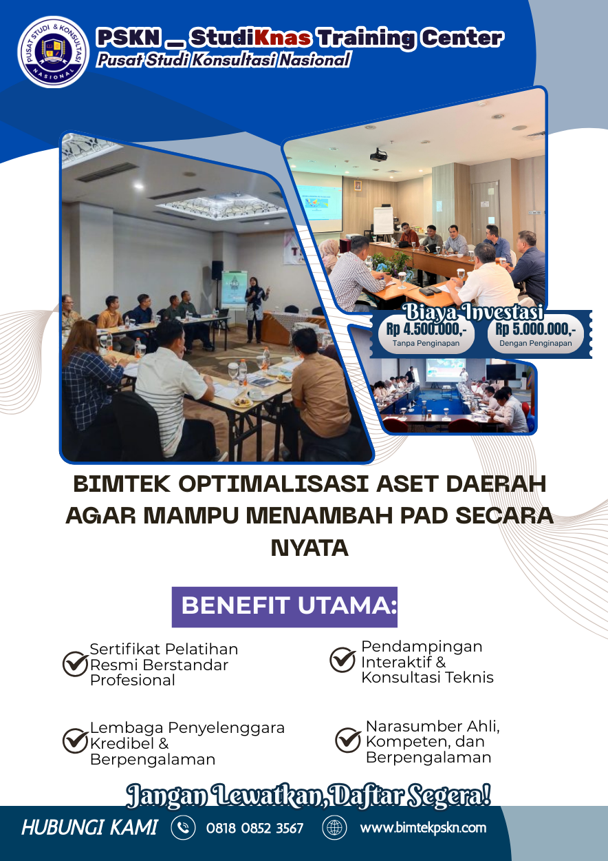 Kata Kunci Fokus: bimtek optimalisasi aset daerah, pemanfaatan aset pemda, aset daerah produktif, pelatihan aset pemerintah