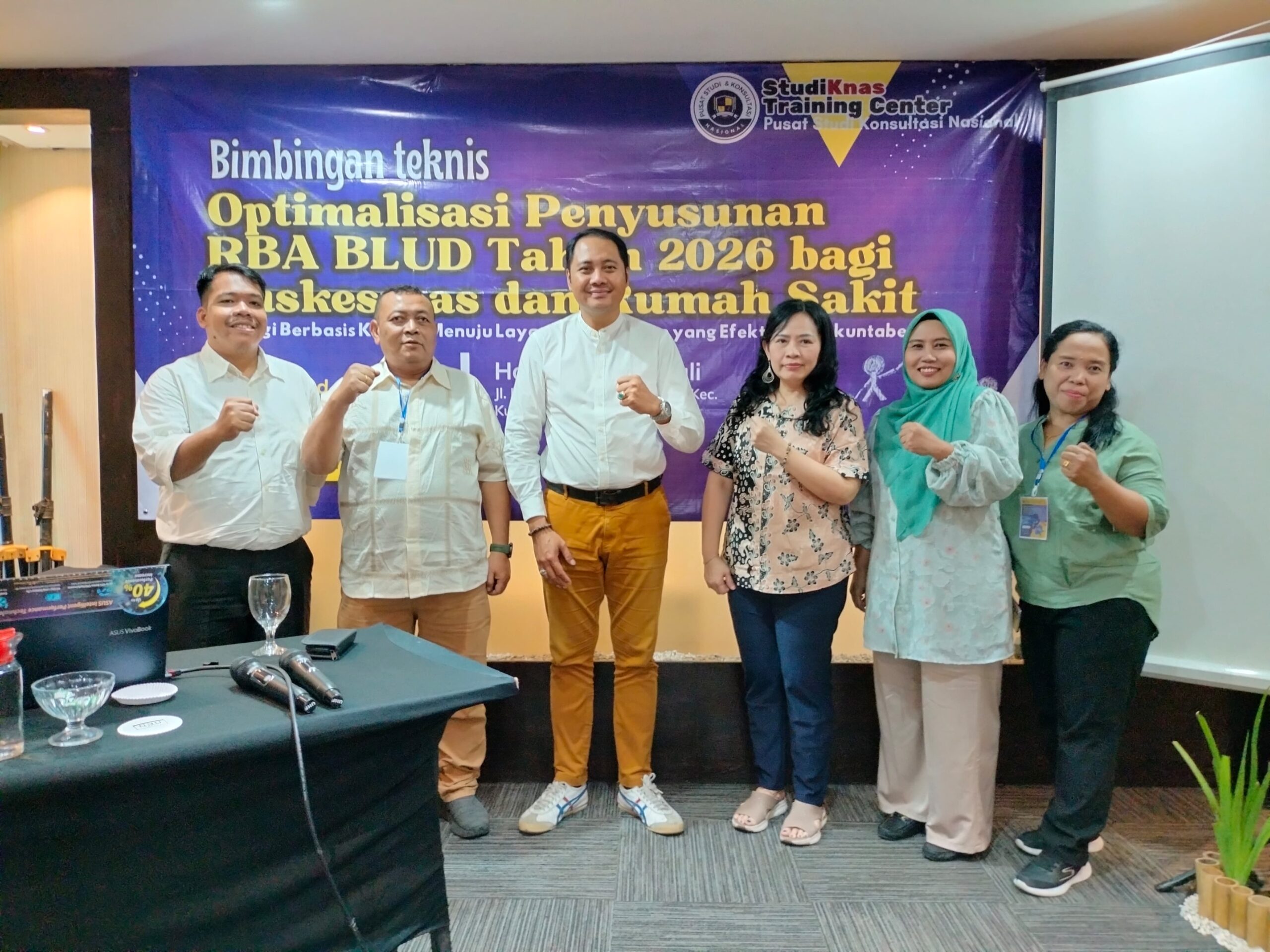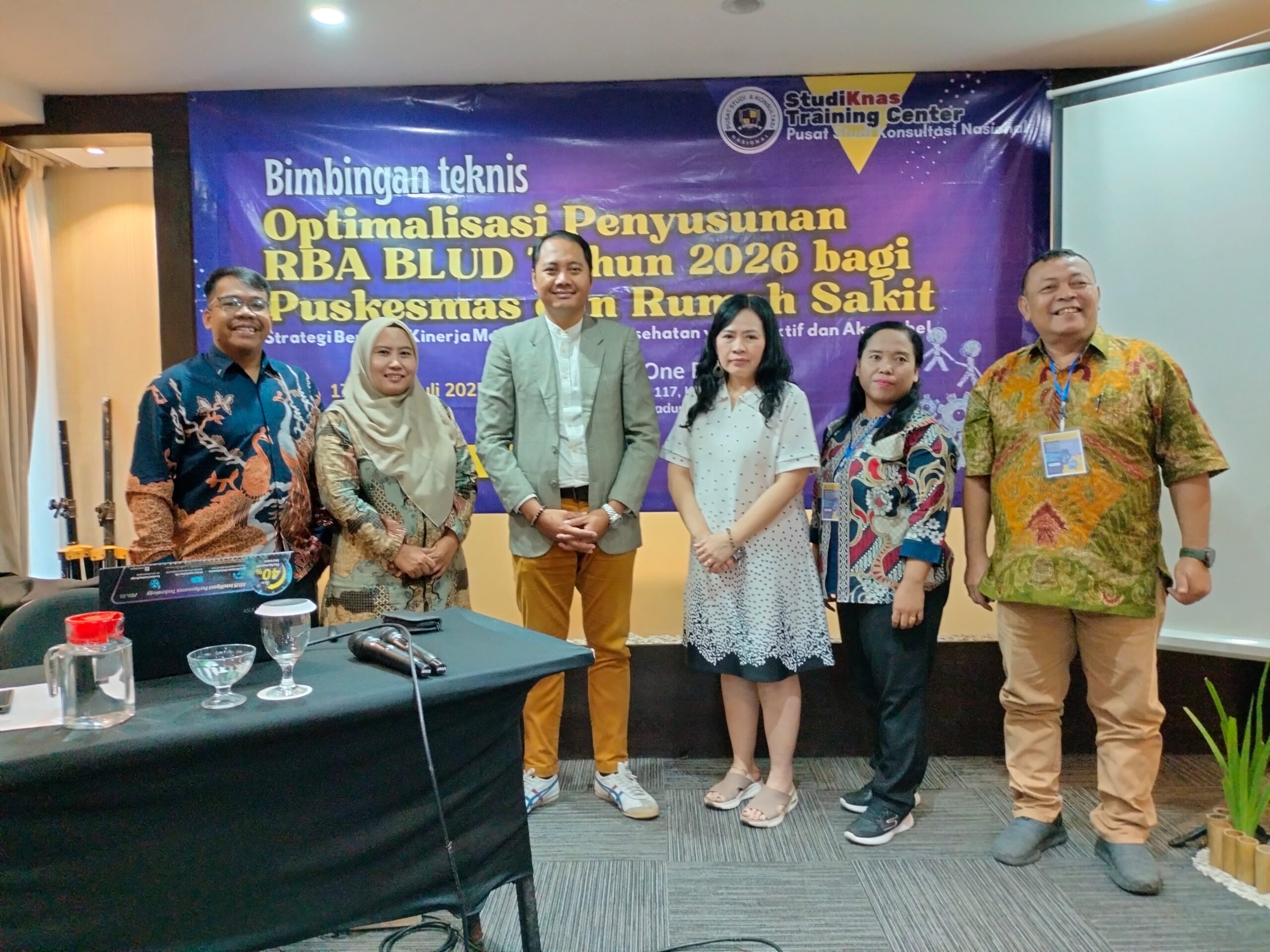 Penerapan Badan Layanan Umum Daerah (BLUD) pada Puskesmas dan Rumah Sakit memberikan fleksibilitas dalam pengelolaan keuangan untuk meningkatkan mutu pelayanan kesehatan. Penyusunan Rencana Bisnis dan Anggaran (RBA) merupakan dokumen penting dalam pengelolaan BLUD yang harus disusun berdasarkan prinsip-prinsip transparansi, akuntabilitas, dan kinerja. Namun, dalam praktiknya, masih banyak kendala yang dihadapi seperti kurangnya pemahaman terhadap substansi RBA, lemahnya integrasi antara rencana pelayanan dan anggaran, serta kurangnya penguasaan teknis dalam penyusunan dokumen RBA. Untuk itu, diperlukan workshop guna mengoptimalkan penyusunan RBA Tahun 2026 yang strategis, terarah, dan selaras dengan indikator kinerja pelayanan kesehatan.