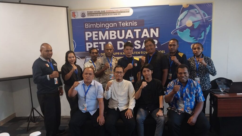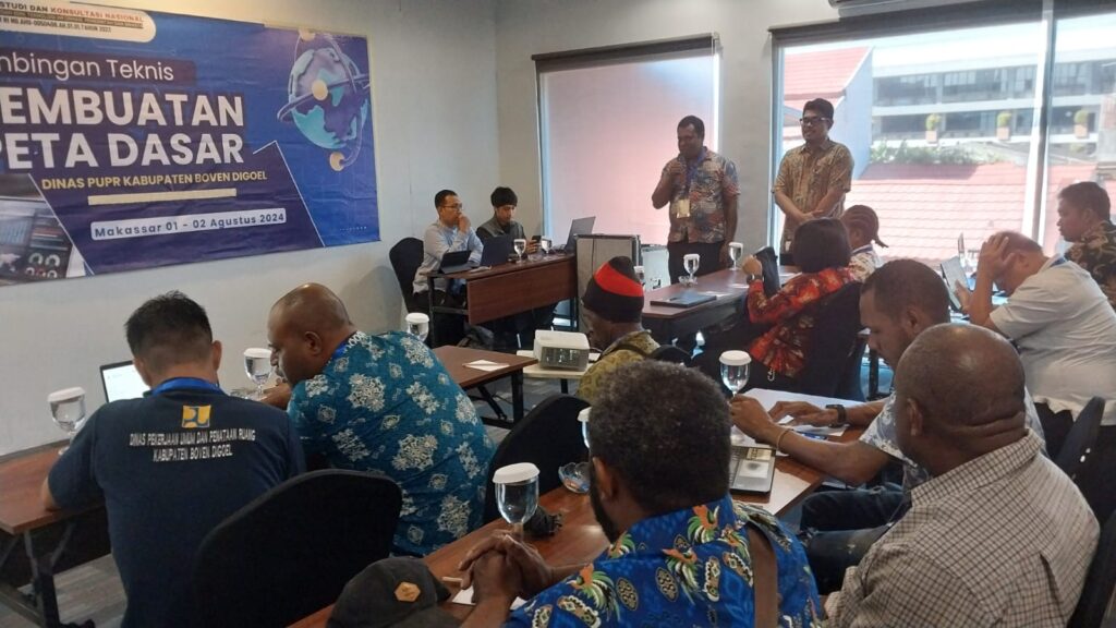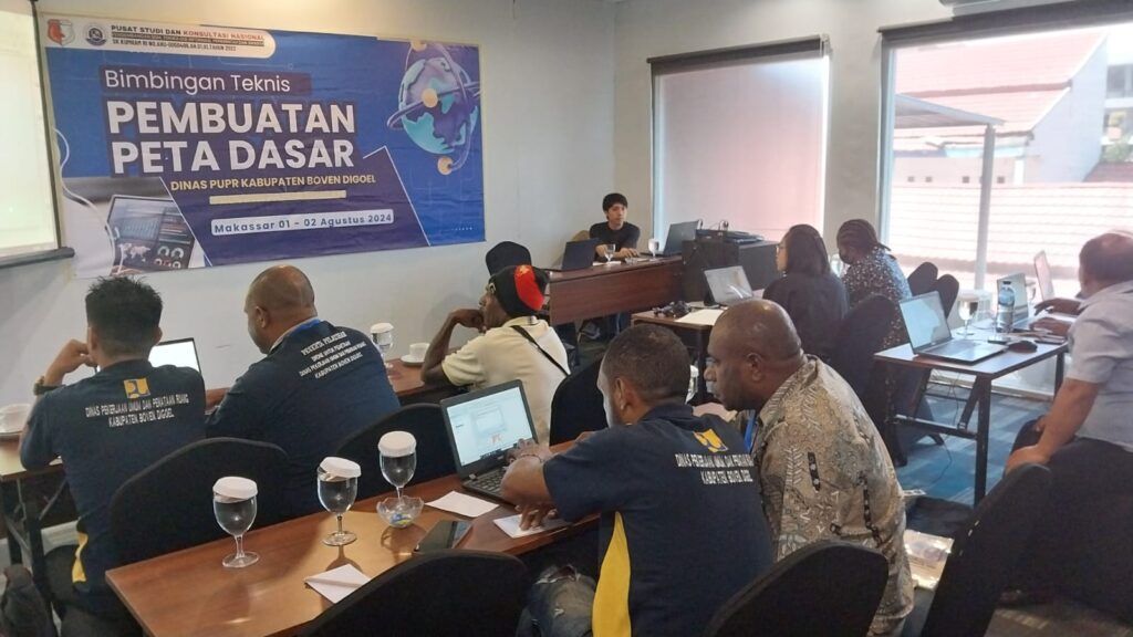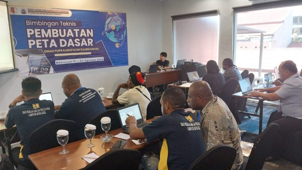 Dinas PUPR Kabupaten Boven Digoel Mengikuti Bimbingan Teknis Bimbingan Teknis Pembuatan Peta Dasar yang di selenggarakan oleh Pusat Studi & Konsultasi Nasional pada tanggal 01-02 Agustus 2024 di KHAS Makassar Hotel Jl. Daeng Tompo No.28-36, Maloku, Kec. Ujung Pandang, Kota Makassar, Sulawesi Selatan 90112.