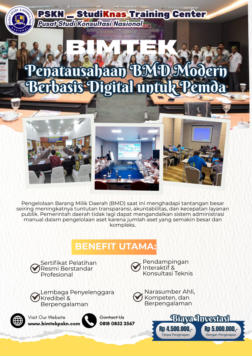 Bimtek Penatausahaan BMD Modern Berbasis Digital menjadi solusi penting untuk meningkatkan kompetensi aparatur sehingga proses pengelolaan aset dapat berjalan efektif dan mendukung penyusunan laporan keuangan yang berkualitas.