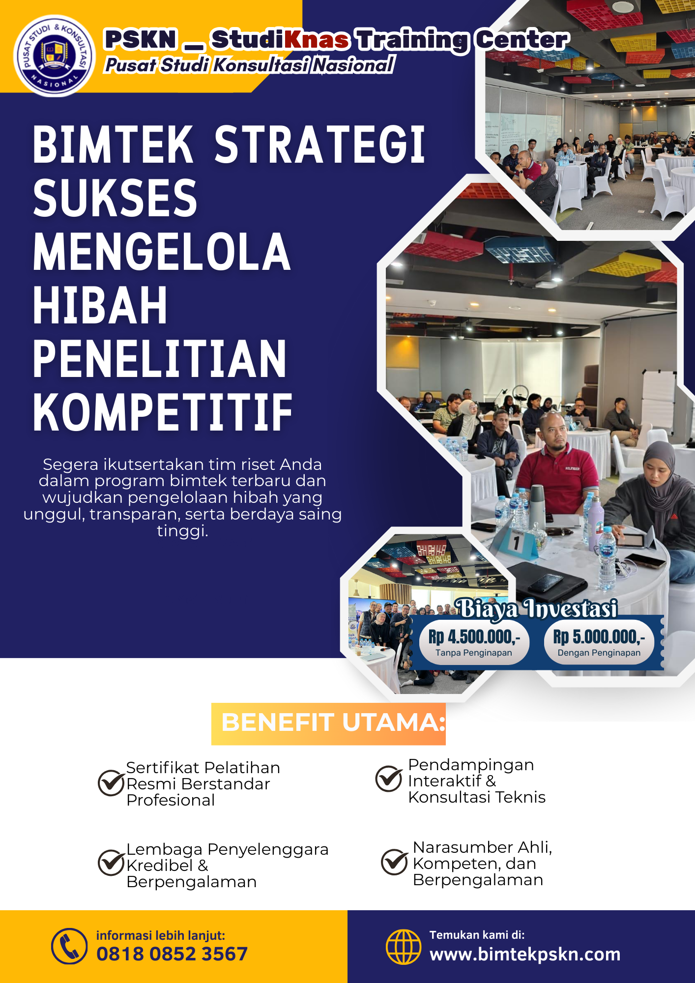 Segera ikutsertakan tim riset Anda dalam program bimtek terbaru dan wujudkan pengelolaan hibah yang unggul, transparan, serta berdaya saing tinggi.