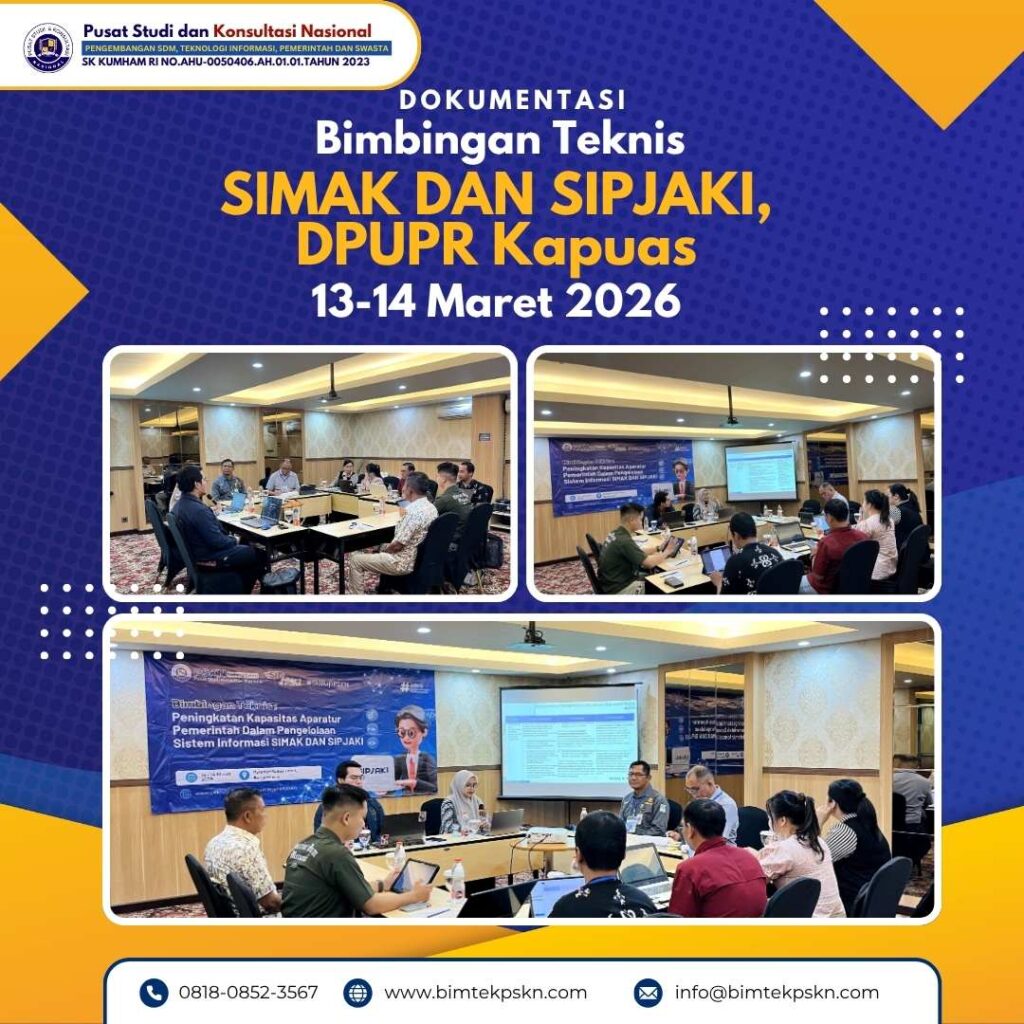 Namun demikian, keberhasilan implementasi kedua sistem tersebut sangat bergantung pada kapasitas aparatur pemerintah sebagai pengguna utama. Oleh karena itu, Bimbingan Teknis (Bimtek) Peningkatan Kapasitas Aparatur Pemerintah dalam Pengelolaan Sistem Informasi SIMAK dan SIPJAKI menjadi kebutuhan strategis yang tidak dapat diabaikan.