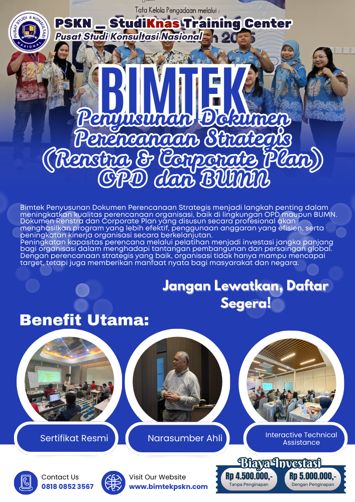 Karena pentingnya dokumen tersebut, peningkatan kompetensi aparatur melalui Bimbingan Teknis (Bimtek) Penyusunan Dokumen Perencanaan Strategis menjadi kebutuhan strategis bagi ASN, OPD, maupun BUMN.