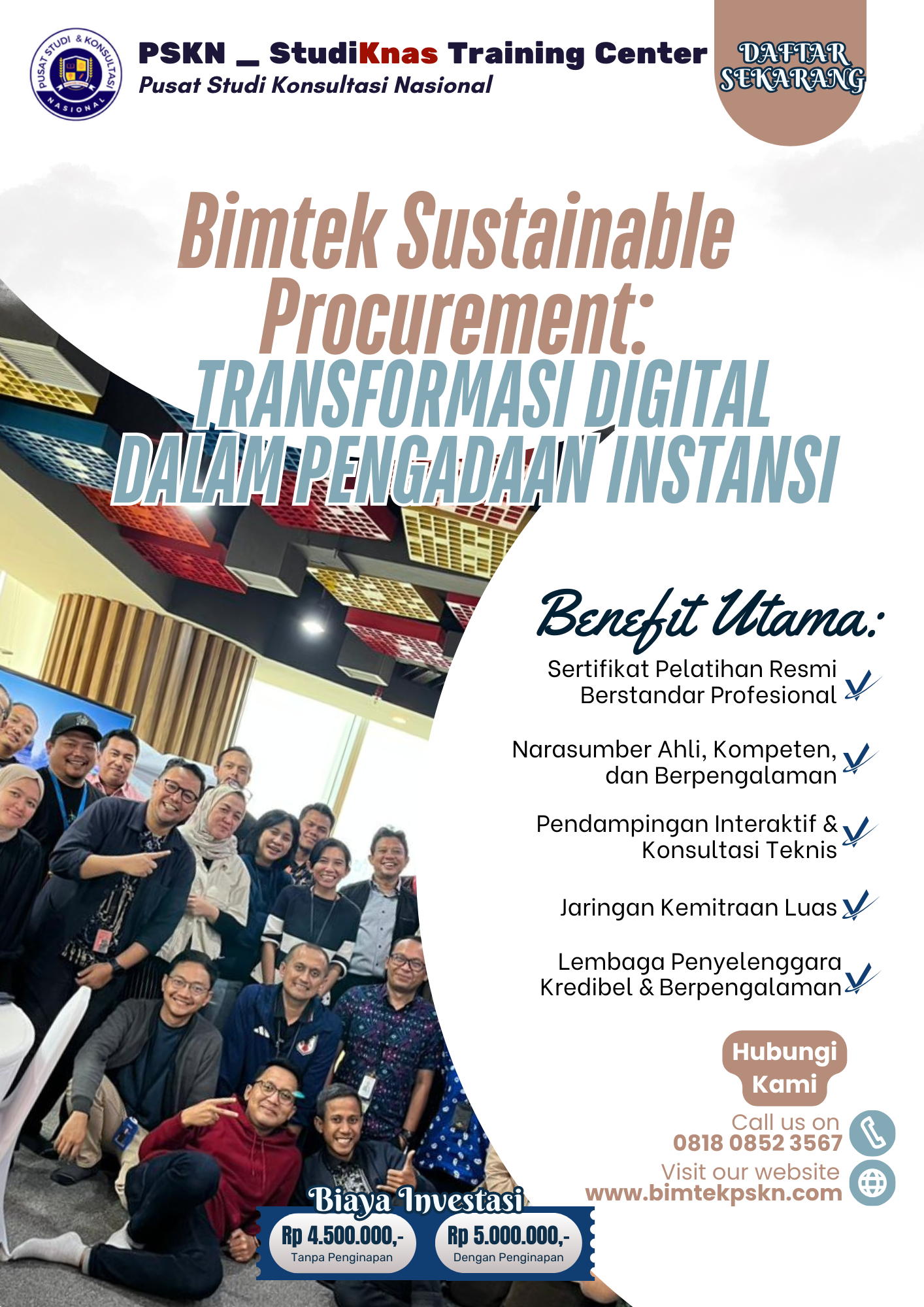 Segera jadwalkan instansi Anda mengikuti Bimtek Sustainable Procurement dan wujudkan pengadaan digital yang efisien, transparan, serta berkelanjutan.