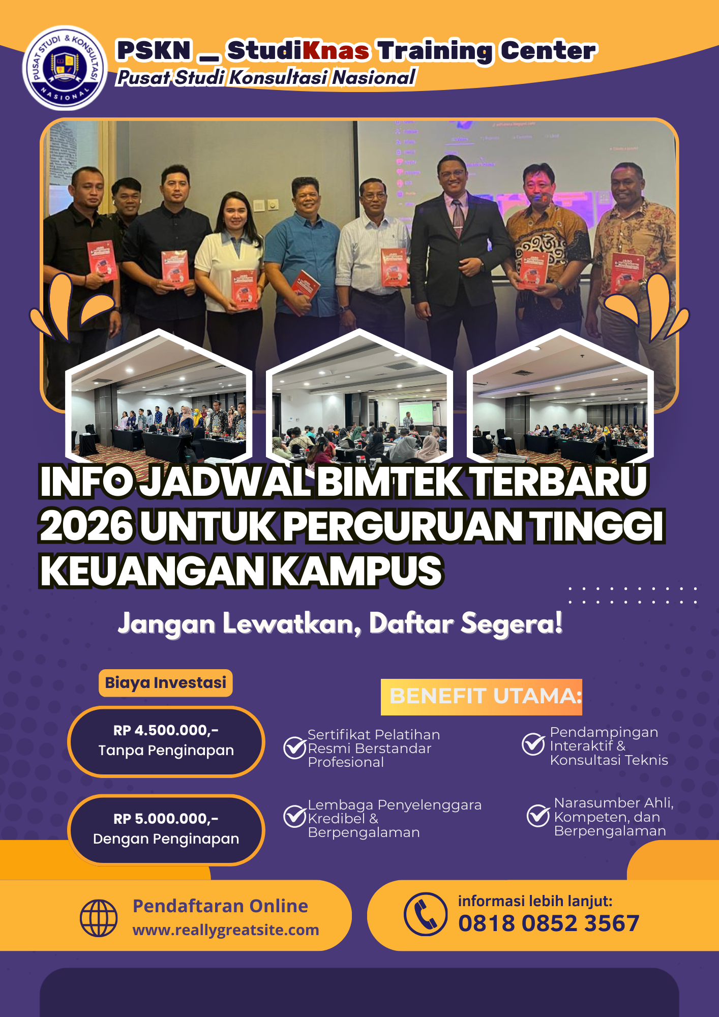 Segera cek jadwal bimtek terbaru 2026, amankan kuota peserta institusi Anda, dan tingkatkan kualitas tata kelola keuangan kampus mulai sekarang.