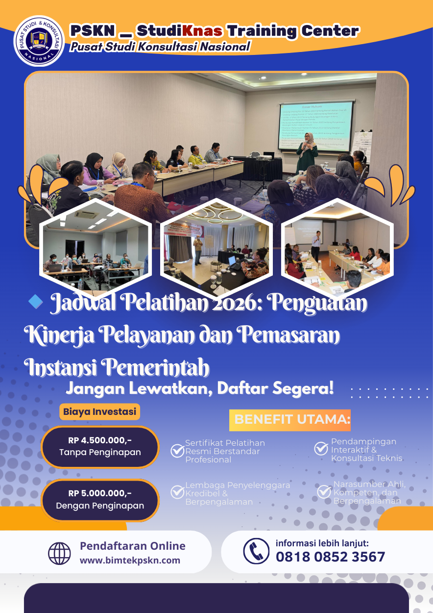 Segera jadwalkan keikutsertaan instansi Anda dalam program Bimtek Pelayanan dan Pemasaran 2026 untuk meningkatkan kualitas pelayanan publik secara profesional.