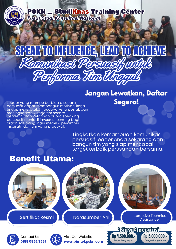 Pelatihan public speaking persuasif menjadi investasi penting bagi organisasi yang ingin memiliki pemimpin inspiratif dan tim yang produktif.