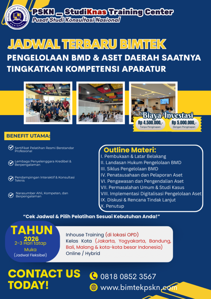 Jadwal Terbaru Bimtek Pengelolaan BMD & Aset Daerah Saatnya Tingkatkan Kompetensi Aparatur