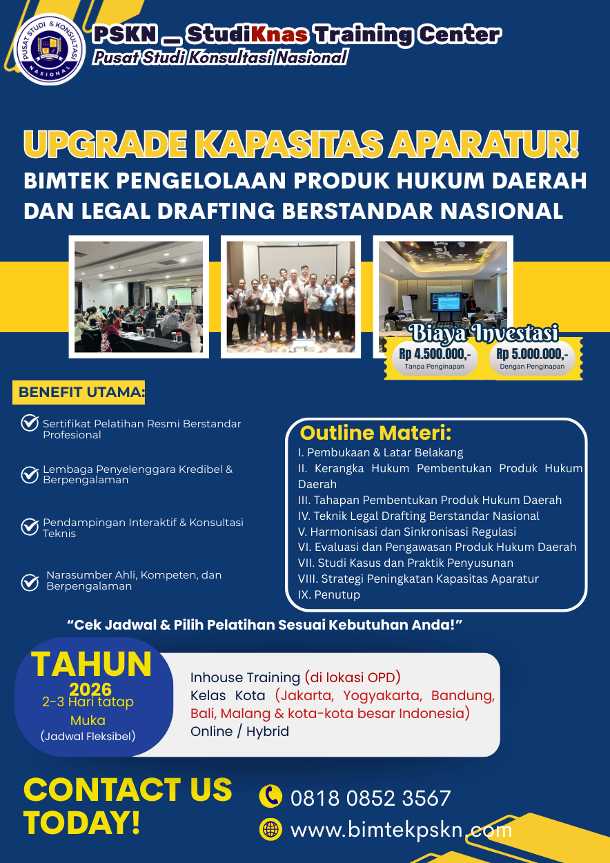 Dengan kompetensi legal drafting yang mumpuni, pemerintah daerah dapat menghasilkan produk hukum yang tidak hanya sah secara yuridis, tetapi juga efektif dalam pelaksanaannya.